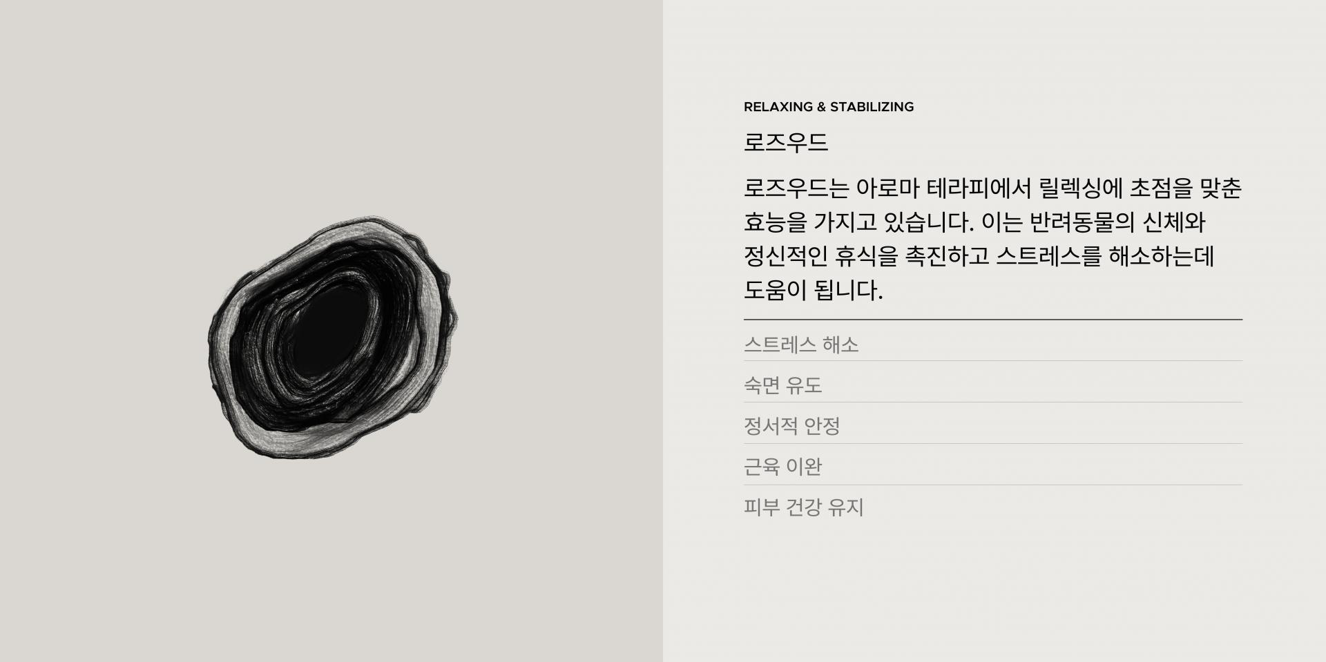 - 숙면 유도: 로즈우드의 향기는 안정된 상태로 몸과 마음을 이끌어주어 수면을 유도하는데 도움을 줍니다. 이는 반려동물이 편안하게 잠을 자고 깊은 휴식을 취할 수 있도록 돕습니다.